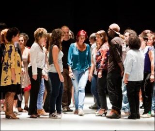 100 personnes sur scène. Un paysage de gens avec des professions différentes, tous revendiquant leurs positions dans notre société, de façon individuelle et en tant que groupe, créant une sorte d’atlas de la cohésion complexe du tissu social et urbain. Une révolution calme. Une pièce motivée par l’idée que l’art doit jouer un rôle actif dans la société, unissant l’art et la vie.