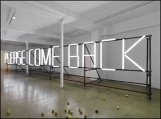 – Please come back (K.Font), 2008. Tubes blancs fluorescents. 300 x 200 x 14000 cm