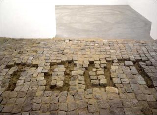— Untitled (Tout doit disparaître), 2008. Pavés. Dimension variable selon l’espace.