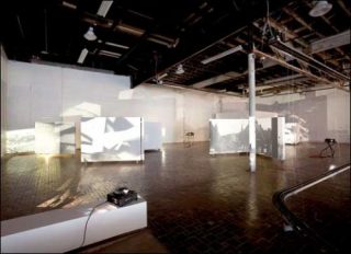 Des diapositives, tournant sur d’antiques carrousels, et projetées à même les murs, sont de la même veine: images pauvres d’objets pauvres — papiers d’emballage, étiquettes d’embarquement, boites de plastique vides, etc.