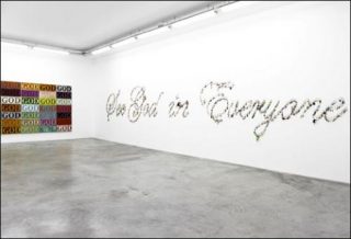 Dans l’une des installations, Farhad Moshiri a récupéré un millier de porte-clés qui forment la phrase «See God in Everyone» et dans l’autre une multitude de couteaux de couleurs et de tailles différentes sont plantés dans le mur aux côtés de 21 portraits européens du siècle dernier rassemblés par Farhad Moshiri pour écrire le mot «Quiet». Dans ses installations Farhad Moshiri utilise la tradition du ready made en récoltant des objets trouvés, pratique artistique totalement ignorée en Iran, pour manier le jeu de l’oxymoron et ainsi révéler l’ambiguïté d’un pays qui se transforme sans cesse.