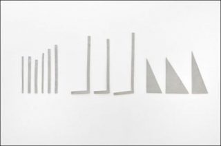 Nous avons trouvé nos modèles dans différents manuels scolaires — certains datant d’un âge où les enfants étaient poussés à comprendre les nombres par un système de récompenses. On y retrouve non seulement des bonbons et toutes sortes de friandises (pour leur faire avaler la pilule amère de l’arithmétique) mais également des paquets de cigarettes. Beaucoup d’autres réalisations ont pour référent un matériel pédagogique contemporain de notre propre éducation; une période où l’enseignement des mathématiques à l’école primaire était centrée sur une fixation étrange et infructueuse sur la théorie des ensembles. A l’époque nous passions de nombreuses heures à trier les triangles rouges et les bleus, séparer les formes jaunes à quatre côtés avec les formes «non-jaunes» à quatre côtés et les formes «non-jaunes» à trois faces.» (Bevis Martin & Charlie Youle)