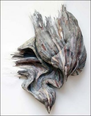 Ainsi à la Galerie GP & N Vallois, en 2011, son installation Desnatureza semblait éclore du sol et tendre dans sa poussée à perforer irrésistiblement le plafond. Comme un liseron, la sculpture dont les racines puisent leur source dans l’imaginaire de l’artiste, rampait jusqu’à grignoter l’espace du White Cube.