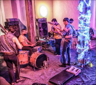 Troisième acte de l’Opéra XXS, Omertà réunit autour de Florence Giroud un groupe de cinq musiciens (Jérémie Sauvage basse, guitare, Mathieu Tilly générateurs, batterie, percussions, Romain Deferron, guitare, harmonium indien, clavier, cengceng, Pierre Bujeau guitare, basse, Romain Hervault, basse, harmonium, Ernest Bergez, Sondier et Florence Giroud, voix, percussion). L’Opéra XXS est un projet total, à la fois plastique et musical, développé par Florence Giroud depuis 2011.
