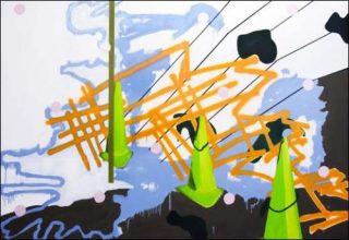 «A la surface de la langue» est le titre de la série que Florent Girard présente dans cette exposition, une série de peintures pour dire et non un discours. L’informatique à la base de sa création d’images se fait plus discret, Florent Girard s’est confronté directement à la toile et à la liberté de peindre. «J’ai laissé une place plus importante à ce que la toile imposait au moment où je travaillais».