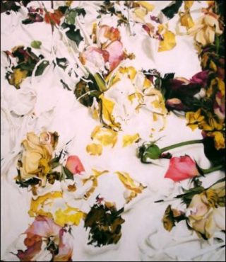 Des raffinés caducées, à l’autoportrait au réalisme dérangeant, à la monumentale rose sanglier, au bouton de chevreuil et rose cochon audacieux, aux linceuls pétrifiants de porcelaine de roses séchées, aux éclatantes fleurs dégoulinantes et gorgées d’épaisse peinture acrylique, aux compositions très élaborées des «vanités», le travail d’Élisabeth Gilbert-Dragic est irréductible à l’esthétisme normé des «Vanités».