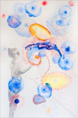 La pratique de la peinture avec de l’eau sur une surface non poreuse permet de vivre l’acte de peindre dans le sentiment d’écriture automatique. L’écoulement de l’eau , à l’intérieur du corps et autour du corps, et les espaces invisibles que nous appelons, aussi bien l’air que l’imagination, créent des connexions avec l’espace infini — qu’il soit microscopique ou galactique. Et mon but est de rendre visible le merveilleux où la nature divine associe de façon innée ces espaces que nous ne pouvons voir physiquement.