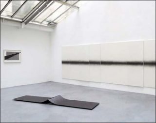 Malgré la frénésie du geste, le résultat est emprunt d’une rigueur quasi minimale car déterminé préalablement par une logique mentale. La mine de graphite, omniprésente dans ses travaux, enregistre la trace d’un emballement corporel. Véritable mémoire d’une action, ces dessins performés évoquent indéniablement la notion de paysage et la relation de l’homme avec la nature.