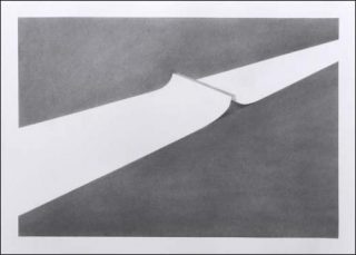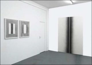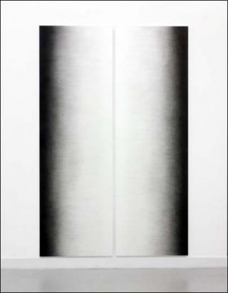 «Dans la pratique dessinée de l’artiste, tout est affaire de saturation et de relâche. Sans titre (diptyque), 2015, en témoigne par la saturation de la mine graphite — centrale, verticale, grise, presque noire — à partir de laquelle la lumière rayonne, comme depuis un centre aveugle et souterrain, caché dans les profondeurs de la feuille. A partir de ce rayonnement, le graphite se charge d’électricité, d’une force de concentration très resserrée, dont le seul but serait la dilatation, la dilution dans le blanc de la feuille. Comme deux aimants qui s’attirent ou se repoussent, la tension disparaît peu à peu pour laisser place à l’effacement, en une épure du geste devenu silencieux.