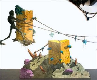 Le dispositif pictural d’Emmanuel Simon est un processus ouvert. Les espaces vides du lieu d’exposition sont peints et parfois seulement ébauchés sur de grands tableaux sur lesquels d’autres artistes sont invités à intervenir. Elise de Castelbajac, Elise Fahey, François Lefèvre et Florent Masante viennent ainsi compléter les œuvres entamées, en tenant compte ou non des éléments peints par Emmanuel Simon. L’incohérence et l’hétérogénéité potentielles des peintures achevées remettent en question les notions d’originalité et d’autorité. Elles désacralisent l’œuvre et l’auteur pour engager d’autres rapports humains que la concurrence et l’individualisme prônés par la société actuelle.