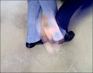 Les trois films de Fragment I, synchronisés dans un dispositif horizontal, reprennent la grammaire visuelle de l’artiste. La guerre officielle de la course au pouvoir s’y conjugue à une querelle officieuse entre les sexes, exposant au grand jour la violence dont sont porteuses les images, toutes les images. Dans trois cadrages juxtaposés, les pieds de trois duos s’approchent, se cherchent, se frôlent, puis s’attaquent jusqu’à la déstabilisation et l’effondrement de l’un des partenaires.