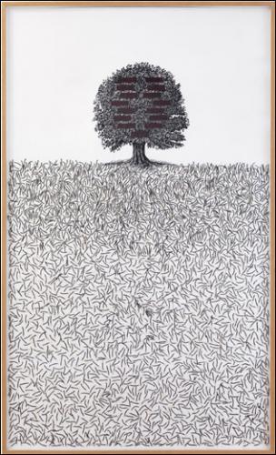 Dans mon travail, le cube et la sphère renvoient à des formes fondamentales du monde et on les retrouve dans plusieurs de mes pièces. Mes sujets de travail sont des questionnements sur l’identité humaine. Family Tree, est le dessin d’un arbre généalogique dont les cartouches filiatives sont remplacées par des grattoirs et le paysage alentour formé par des déchets d’allumettes. Dans cette oeuvre, il y a en quelque sorte une relation de cause à effet. Pour moi, une pièce est réussie quand le fond et la forme se répondent. J’aime travailler avec une économie de moyen, de manière précise et concise.