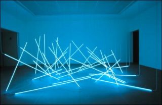 François Morellet. La définition d’une installation est assez imprécise. Ce sont pour moi des mises en place éphémères d’éléments légers, disposés différemment selon l’architecture de chaque lieu d’exposition. C’est souvent réalisé deux ou trois jours avant le vernissage, et j’ai pris moi-même beaucoup de plaisir à réaliser sans doute une centaine de ces installations éphémères dont souvent il ne reste plus rien, sinon un souvenir. Il m’a semblé intéressant d’essayer de montrer un choix de cinquante pièces qui irait de 1963 à 2010. Les délais d’impression sont tels qu’il est encore aujourd’hui impossible d’imprimer les photos des installations en cours dans le catalogue. Il faut se contenter des mises en situation antérieures, comme nous l’avons fait pour l’exposition actuelle au Centre Pompidou.