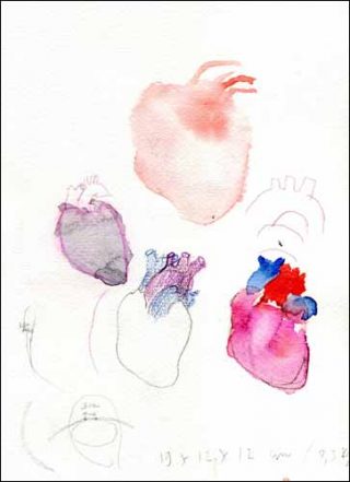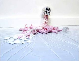 Beaucoup plus épurée, l’installation Sans titre (2005) dévoile tous les organes vitaux humains. D’une tête de mort s’échappe à même le sol une longue colonne vertébrale molle de laine rose, et de petits amas de fils blanc représentant des veines et du sang.