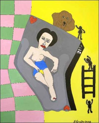 — In Bed with Soxia, 2006. Acrylique sur toile. 147 x 90 cm.