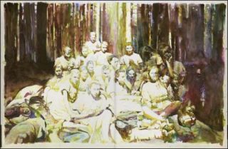 — Martin Dammann, Im Dickicht, 2010. Aquarelle sur papier, encadrement aluminium. 186 x 263 cm