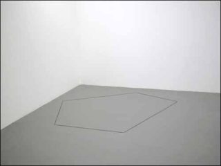 Dans son Å“uvre polygone, par exemple, le spectateur est confronté à un espace vide délimité par un fil courant à quelques centimètres du sol. Le reste de l’œuvre est une affaire de conscience; de jeu de dupe avec nos attentes, avec nos croyances, avec nos peurs. En un sens, il n’est pas faux de dire que devant les sculptures de Fred Sandback, le spectateur invente plus de la moitié de l’œuvre.Â