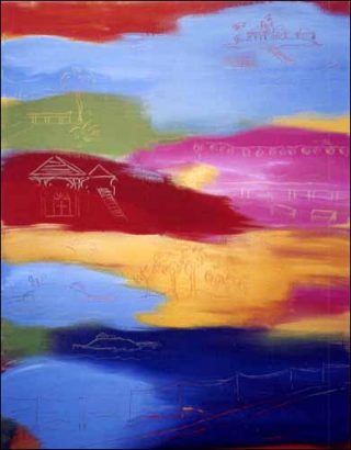 Frédérique Chemin fait ainsi basculer notre perception naturelle vers une appréciation du paysage proche de la vision ou du rêve, où les notions de proximité et d’éloignement sont abolies, établissant une relation d’ordre fusionnelle au paysage. Le regard circule alors librement dans ces panoramas évanescents que la vivacité des coloris anime, évoquant les sensations diffuses et bigarrées qui nous traversent à la simple observation d’un paysage.