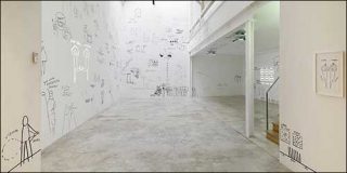 En l’occurrence ici, les murs de la galerie Michel Rein que le Roumain a entièrement recouverts de croquis au feutre noir. Sans aménager de temps mort, ni même d’interruption entre chaque réalisation. Un étourdissement pour le regardeur/lecteur, une surinformation indexée finalement à celle que l’on nous verse quotidiennement.