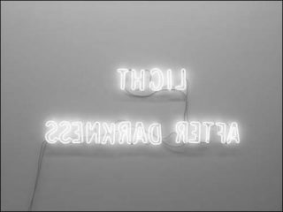 L’archétype de l’élégance et de l’ascèse des mondes anciens et sages, est ainsi violé sur l’autel de l’ironie féroce de Bruno Peinado. Car aucune valeur sacrée n’est épargnée. Même la lumière divine d’après la mort est artificielle. Ecrit en lettres de néon cru et blanc, signe moderne de la débauche, Light After Darkness scintille doucement comme des croyances en des paradis artificiels qui meurent et renaissent sans cesse.