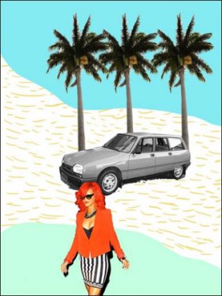Un palmier dans un sac dos suffit à convoquer l’exotisme bon marché d’un voyage lointain. Le collage fonctionne ici comme un déclencheur que le titre vient appuyer. Et c’est un territoire tout entier, fait de stéréotypes, qui s’ouvre au visiteur par un simple déplacement. Une terre idéale synthétisée dans une sculpture d’angle posée dans un espace d’exposition.