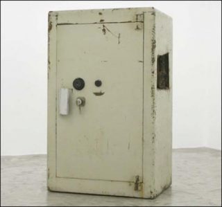 — Maurizio Cattelan, -74.400.000, 1996. Coffre-fort fracturé. 140 x 70 x 90 cm. Collection particulière