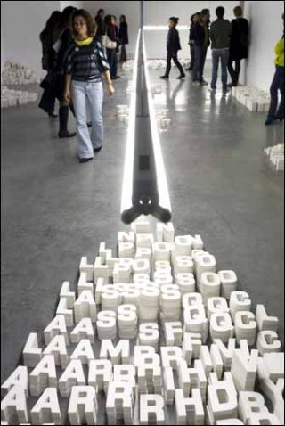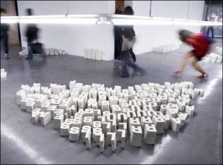 — 10 000 Letters, 2008. Lettres de plâtre produites en 10 000 exemplaires. Dimension lettre : 16 x 8 x 3 cm.