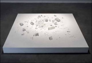 — As An Object, AK47 version #00, 2008. Kalashnikov type AK47 en verre détruites dans le lieu d’exposition.