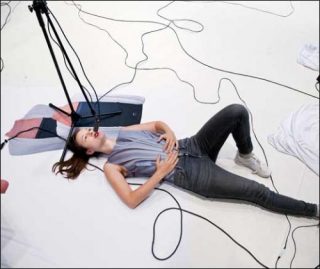 De la danse à l’installation en passant par la performance et la musique, la collaboration qui unit Lou Masduraud et Antoine Bellini résonne au rythme des pulsations d’un cœur en bonne santé. Un cœur qui bat la chamade dans un corps poreux et habité par les sensations sonores, les bruits synthétiques et les tensions vibratoires. Car c’est bien ce qui intéresse les deux artistes: l’exploration des connexions entre une présence acoustique abstraite et une présence matérielle signifiée par les corps dans l’espace. De cette mise en relation naît une tension où mouvements et sons interagissent pour et avec le public dans la situation donnée par la performance.