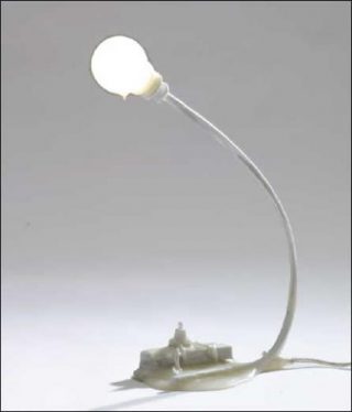 — Frozen Lantern, 2010. Lampe sur pied en toile-filet de tissu, résine, métal, bois et gelcoat pour l’effet glacé. 175 x 73 cm.