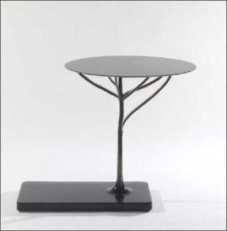 Cette recherche démiurgique, Wieki Somers la mène sur plusieurs typologies de meubles et d’objets. Des vases d’une grâce incomparable, en verre sablé ou en résine, sont ornés de délicates brindilles fleuries qui en soulignent la ligne avec la souplesse et la légèreté de l’art nouveau. Les tabourets singuliers dont les pieds de bambous semblent fixés entre eux par magie, un simple effleurement que la résine solidarise de façon quasi invisible. Les tables uniques prennent leur source dans la nature. Les pieds sont prélevés dans la campagne, en une arborescence qui vient se figer entre un plateau en fibre de carbone et une base moulée.