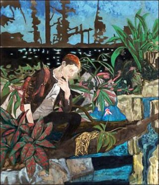 Dans les peintures figuratives d’Hernan Bas, le traitement minutieusement détaillé des protagonistes et surtout la luxuriance ou l’exubérance du paysage les enveloppant, qui n’est d’ailleurs pas sans évoquer l’œuvre romantique d’Arnold Böcklin ou celle de Caspar David Friedrich, contrastent fortement avec l’esquisse beaucoup plus gestuelle et hâtive de certains pans de ses arrière-plans, comme par exemple dans The rare orchid collector (on expedition) ou encore Easter Mouning. Saisis dans des instants de pure flânerie, ses personnages apparaissent toujours comme suspendus dans le temps et dans les limbes, entre adolescence et âge adulte, nature et abstraction.