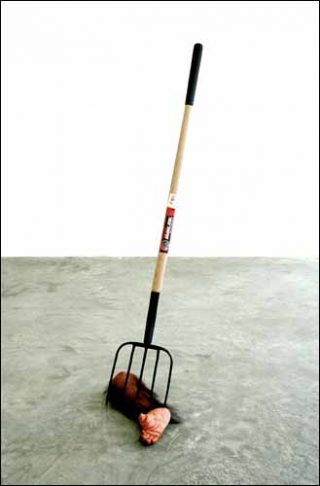 — Fucked (Human Version), 2005. Polyester, mousse, peinture, ustensiles.