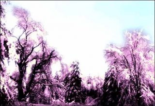 — Patio, 2002. Installation. Fresque photographique, et Warm Gardens, 2001 : meubles lumineux et 5 photos.