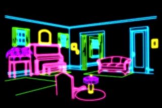 De cette clinquance tape-à -l’œil , ne subsiste que le squelette fluorescent, dans Luminaville. Plus loin, une vidéo bonimenteuse fait la réclame d’un produit miraculeux, dont elle se garde bien de montrer l’effet annoncé, par ailleurs parfaitement saugrenu : rendre les mains luminescentes.