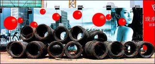 Des rouleaux de fils métalliques, hostiles mais bien réels, se découpent cruellement devant ces images d’un avenir utopique.