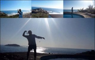 Ce n’est sans doute pas un hasard dès lors si la maison aperçue dans la vidéo porte le nom de Observatory House, si elle est dotée d’une vue panoramique à 360° et si elle est à son tour la réplique d’un observatoire du XVIIIe siècle du site de Jantar Mantar à New Delhi. Ce n’est sans doute pas un hasard non plus si l’écran se partage en quatre scènes, trois en haut et une en bas, quatriparti des quatre éléments, des quatre points cardinaux ou encore des mortels et des immortels, du ciel et de la terre.