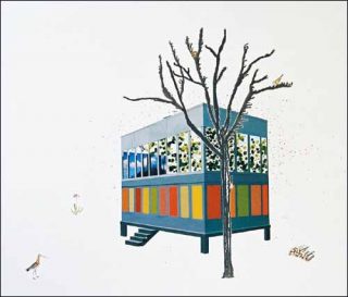 L’œuvre intitulée Tree with Scaffolding, encre d’aquarelle sur papier, représente deux arbres encerclés d’une structure métallique qui morcelle l’arbre, comme pour en faire une structure géométrique non variable, soumise à la rigidité d’un échafaudage. Dans Tree, une sculpture en forme de tige d’arbre, la tige placée sous un cube transparent, est dentique à celles que l’on dispose sur des maquettes d’architecture. Là encore, la nature est traitée comme un objet à construire, à modeler et à placer au bon endroit.