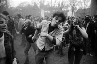 Exit donc l’exigence de vérité, et la prétention de retransmettre sur le cliché un sujet donné dans son intégralité — exigence que l’on retrouve au fondement de «l’instant décisif». De même, Garry Winogrand ne semble pas nécessairement capter le moment fatidique censé délivrer la signification de la situation visée par le photographe. Souvent, ses personnages sont tournés vers un hors-champ inaccessible, nous empêchant ainsi de détenir la clé de la signification de la scène, comme dans cette photographie où un attroupement de femmes parqué derrière une barrière de sécurité tend les bras et hurle en direction d’on ne sait quoi (ou qui), tandis qu’un homme au premier plan, au regard ahuri, reste littéralement bouche bée (New York, 1965).