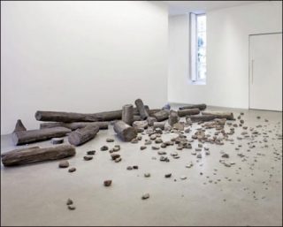 Si le temps est un cycle, destruction et renaissance, apocalypse et renouveau, se succèdent indéfiniment. Gegenwartsdauer représente alors des fragments d’arbre pétrifiés: d’un côté on trouve des morceaux de tronc assez conséquents, de l’autre, de petits éclats, presque aussi minuscules que des grains de sable. Entre ces deux pôles, un amas de fragments s’apparentant à des cailloux, constitue une zone intermédiaire permettant de passer du plus grand au plus petit, ou inversement.