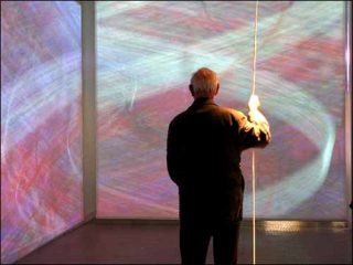 Pascal Dombis ne cherche pas la stupeur et l’effacement, au contraire. Si la ligne se déploie, c’est parce que le spectateur accompagne sa progression. Dans Spin, il se trouve confronté à une spirale infernale dont le vortex l’aspire et le rejette à la fois. Dans Géométries irrationnelles, une installation murale de plus de 20 mètres, la déstructuration de la ligne s’affiche au rythme de son propre parcours. Quant aux lignes colorées des vidéos du deuxième Géométries irrationnelles, elles s’affolent lorsqu’il active une corde située à proximité.