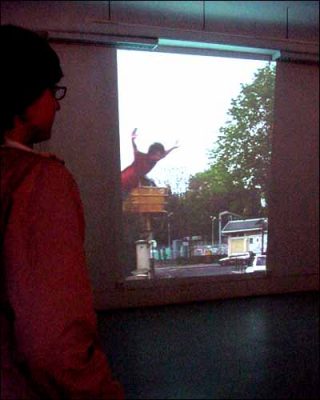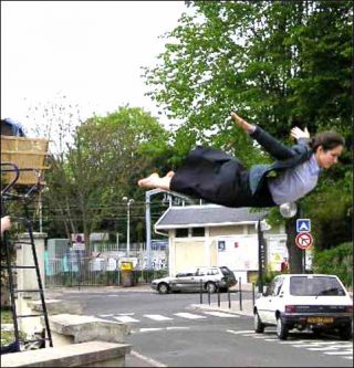 Lorsque Gianni Motti apprend par les étudiants que c’est à Fontenay-aux-Roses (lieu actuel de la faculté d’arts plastiques) que l’artiste Yves Klein a effectué son saut dans le vide immortalisé par la photographie, il saisit ce hasard. Après enquête et mise en place technique, le groupe va effectuer ce saut en lieu et place de celui d’Yves Klein. Entre hommage, citation et réappropriation, les étudiants rejouent un classique de l’histoire de l’art. Au-delà de l’expérience commune, ils réalisent deux vidéo-projections et des photographies. Les polaroïds de Jenny Feray documentent l’évolution du travail, des prémices à la mise en place du saut jusqu’au vernissage.