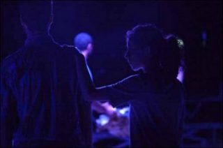 Lorsqu’ils sautent ensemble, les danseurs apparaissent clairement comme producteurs d’énergie: les gradins tremblent, l’environnement se transforme. Cette transformation effectuée, les corps agités de tressautement apparaissent fortement liés. Suite à une explosion de rouge, le noir se fait. L’air demeure un moment empli de ces pulsations, la salle est envahie par l’espace urbain, défini ici comme un mélange d’énergies sonores, lumineuses et cinétiques. La représentation des corps est intelligemment double: instables et victimes de la ville, ils sont aussi flexibles, capables de s’adapter et de créer.