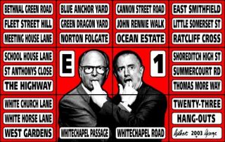 Des morpions géants sont également de la partie, apparaissant ça et là entre deux noms de rue, puis s’immisçant entre les initiales de Gilbert & George. On serait tenté de dire qu’il y a quelque chose de pourri dans le Royaume Uni…