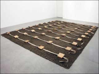 — Gina Pane, Terre protégée I, 1968. Installation: wood, hemp and earth. Approx. 7 x 400 x 420 cm