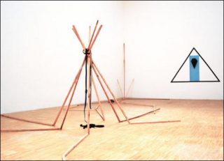 Parallèlement à ce coulage dans le béton et à ce crash test, Naïs Calmettes et Rémi Dupeyrat renouvellent leurs matériaux et utilisent le cuivre, des rondins de bois, de la toile cirée, du verre coloré, des couteaux… Dans le cadre de cette nouvelle installation, ils commandent douze Å“uvres à quinze artistes. Le cahier des charges de ces Å“uvres est qu’elles doivent être un solide géométrique. Cette collection de solides est intégrée à l’installation générale, comme une extraction d’objets finis au milieu de matériaux bruts.