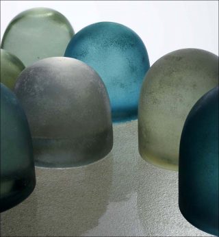 Glass Works est donc le résultat d’une rencontre et d’une volonté. Les vases en verre ici présentés frappent le regard par leur singularité. Chaque pièce est un composé de nuances et de variations, et donne à voir des jeux de transparence et de courbes. Suivre le dessin d’une courbe revient à passer insensiblement d’une surface à une autre. Lisse, celle-ci devient poreuse sinon rugueuse. Le verre, comme le montre le travail de Robert Wilson, est aussi cette matière qui offre le plus de réactions aux éléments extérieurs tels la lumière. A la variation de la texture matérielle répond en quelque sorte celle de l’opacité et de la transparence. Chaque pièce imaginée par Robert Wilson souligne les infinies possibilités du verre.