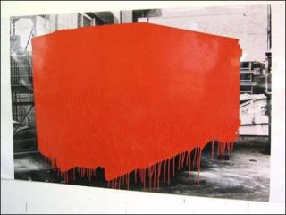 — Dumpster Drawing (Orange), 2005. Photo noir et blanc avec laque et punaises. 102 x 244 cm.