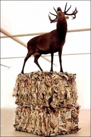— Made in big-bang, 2001. Plastique transparent, animal naturalisé, laques (acrylique), ampoule. 200 x 300 cm.