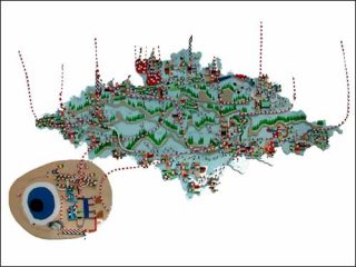 — Restructuration of Public and Private Spaces/Spatial Planning and Local Activities, 2003. Collage et dessin sur papier. 72 x 110 cm.